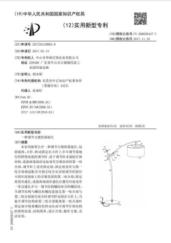 一種調節方便的落地燈